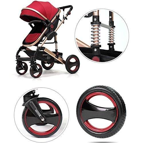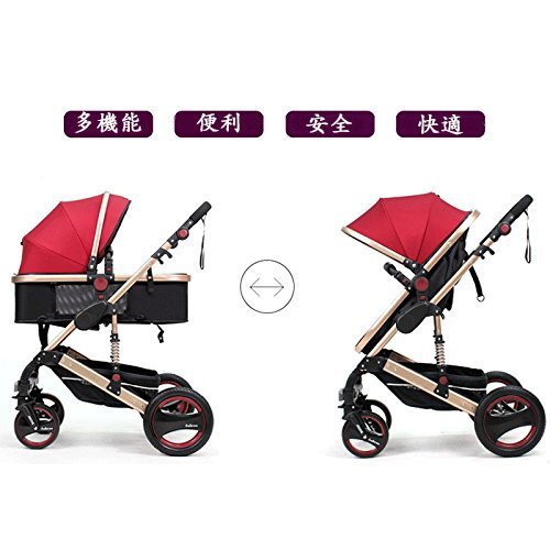Umora 4輪畳めるベビーカー ハイシート ショックレス設計 四季通用 両対面式 1ヶ月~36ヶ月対象(レッド)