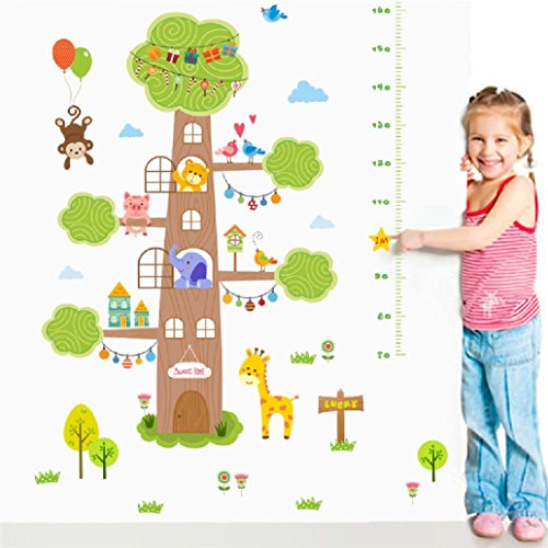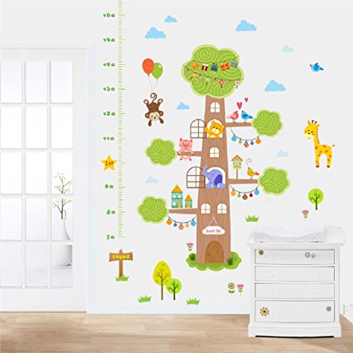 suyunyuan DIY Lovely動物ツリーホーム高さ測定ウォールステッカー子供部屋猿象ライオン子成長チャート壁デカールポスター