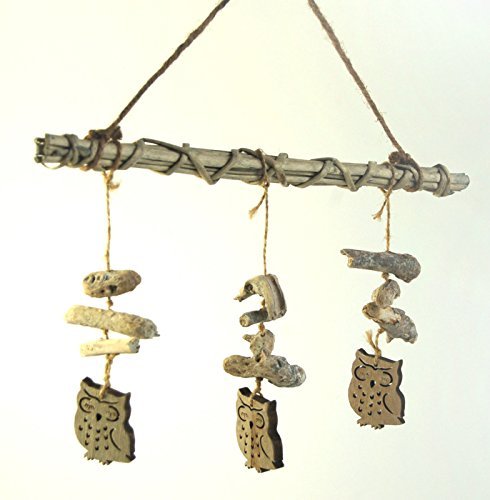 Overall drop of the mobile is approx. 38 cm including the hanging loop;The owls are approx. 5cm x 4cm.;The bar is 30cm long;Pieces of driftwood vary in size from approx. 3cm to 7cm