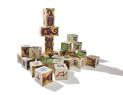 Expand your knowledge of India and the Hindi language. This colorful 32 block Devanagari alphabet set features two sets of vowels. You'll also see every consonant and 0-9 numerals. Feel one debossed side per block. Enjoy the hand crafted Indian animal prints.