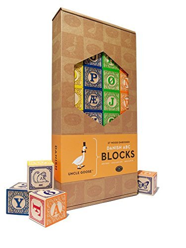 If the only Danish your child knows is a fruit filled pastry, you can broaden their world view with a set of Danish language blocks. This?32 block set features four complete alphabets, numbers, and animal pictures. 32 - 1.75 inch basswood cubes printed with non-toxic, lead-free, child safe inks. Uncle Goose blocks are 100% handcrafted in Grand Rapids, MI from fast-growing and sustainable Great Lakes grown basswood.