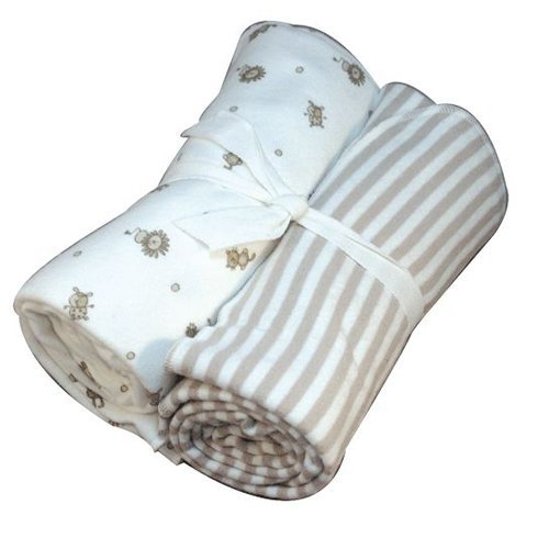 Under the Nile Nature's Nursery Flannel Swaddle Blanket Set, Tan Stripes/Animal Print