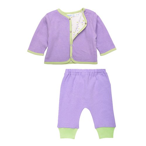 リバーシブルカーディガン&パンツセット、ライラック[ナイルオーガニックコットン3 – 9 M