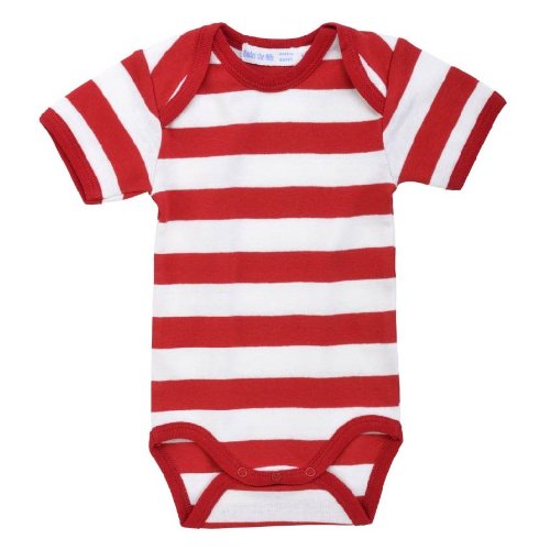 オーガニックコットン ボーダーボディスーツ半袖(レッド) (0-3ヶ月(50~60cm))