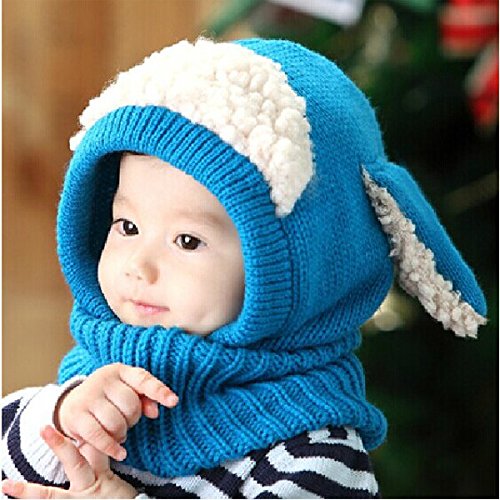 Ungfu Mall ニット帽子 キッズ マフラー付き 耳あて かわいい ウサギちゃん風 赤ちゃん 子供用 防寒 冬 暖かい