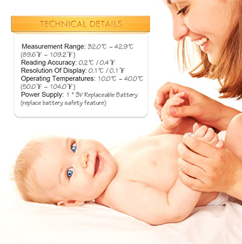 - 2。【高速正確な】1秒で測定するインスタントでクレイジー・フロッグを考慮し、精度は± 0.2 ℃です0.4 °Fくださいされたことがないん子」を参照してください。簡単でも、で、背面の目的と、温度を示すLCDディスプレイが読みを簡単に見つけられます。