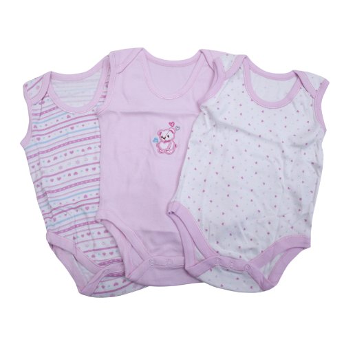 赤ちゃん・ベビー 柄入り ベビー肌着 パジャマ ノースリーブ ボディースーツ (3枚入り) (身長:86-92cm(1歳半-2歳)) (ピンク)