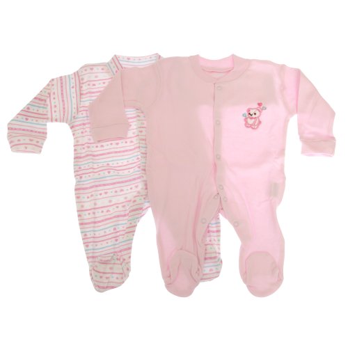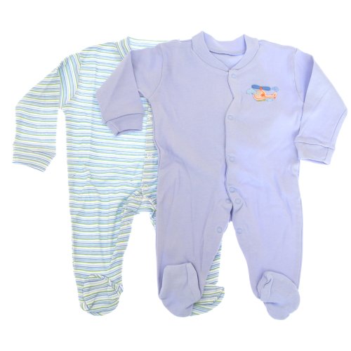 赤ちゃん・ベビー用 綿100% 長袖ロンパース パジャマ スリープスーツ (2枚入り) (6-9ヶ月) (ブルー)