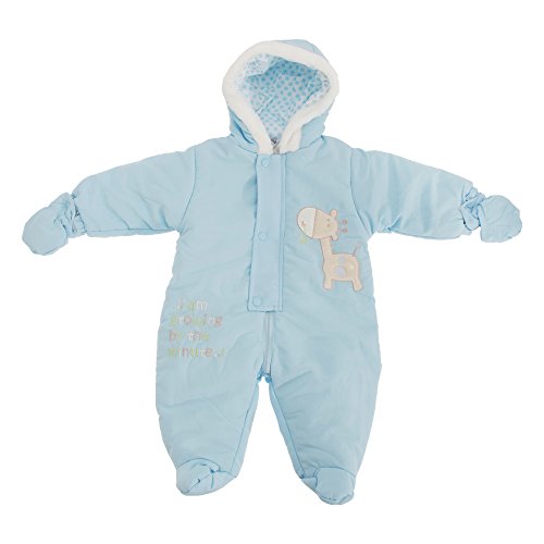 赤ちゃん・ベビー用 きりんさん 冬用あったか フード付スノースーツ ロンパース オールインワン つなぎ カバーオール (新生児) (ブルー)