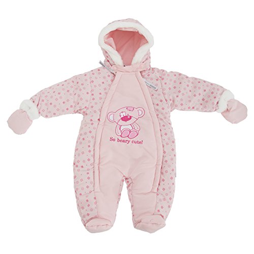 赤ちゃん・ベビー用 くまのデザイン 冬用あったか フード付 スノースーツ ロンパース オールインワン つなぎ カバーオール (3-6ヶ月) (ピンク)