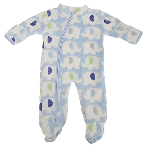 ベビー・赤ちゃん ゾウさん フリース 長袖スリープスーツ カバーオール オールインワン ボディースーツ (新生児) (スカイブルー)