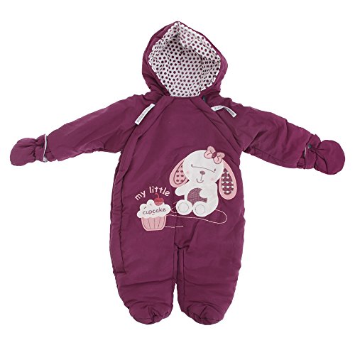 赤ちゃん・ベビー用 リトルカップケーキ 冬用あったか フード付 スノースーツ ロンパース オールインワン つなぎ カバーオール (新生児) (プラム)