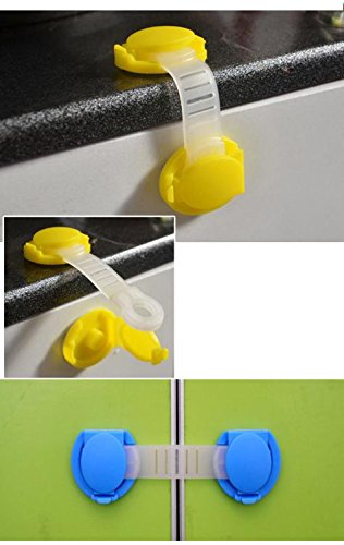 Material: Plastic;Ideal for keeping cabinets, drawers, cupboard and appliance doors closed;Color:Yellow/Blue(We dont offer color choice,we will deliver item randomly)