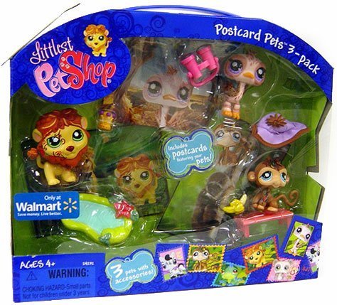 Littlest Pet Shop Exclusive Postcard Pets 3-Pack in Carry Case (Includes Monkey, Lion and Ostrich) [並行輸入品]
