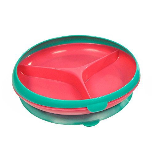 Unique curved rim to help guide more food onto forks and spoons.;Suction base keeps plate in place.