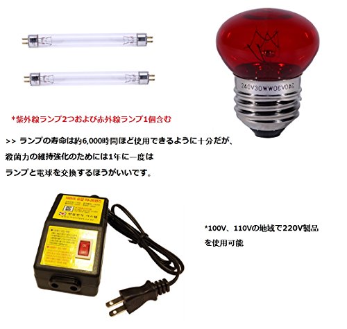 - ランプの寿命は約6,000時間ほど使用できるように十分だが、 殺菌力の維持強化のためには1年に一度は ランプと電球を交換するほうがいいです。