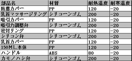 - 素材]:さく乳口、引き上げプレート、本体、フード、キャップ、ボトルスタンド、ハンドル:ポリプロピレン/びん:プリフェニルサルホン(PPSU)/ダイアフラム、やわらかフィットカバー、シリコーン弁、乳首:シリコーンゴム