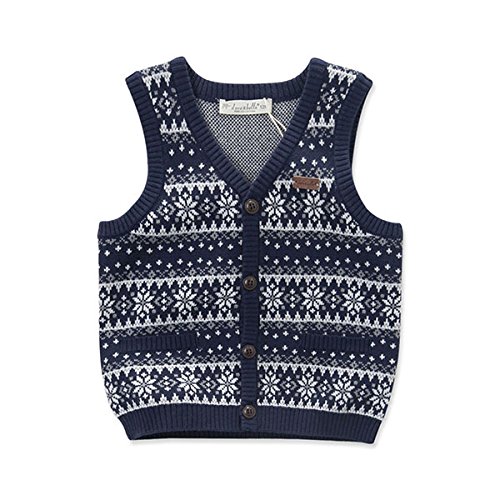 【dave&bella(デイブ&ベラ)】【秋冬/セーター/ベスト】Vネックジャガード織 セーターベスト シングルブレスト 刺繍入りネイビー 80cm/90cm/100cm/110cm/120cm【シンプル・上品・フォーマル・ベーシック】