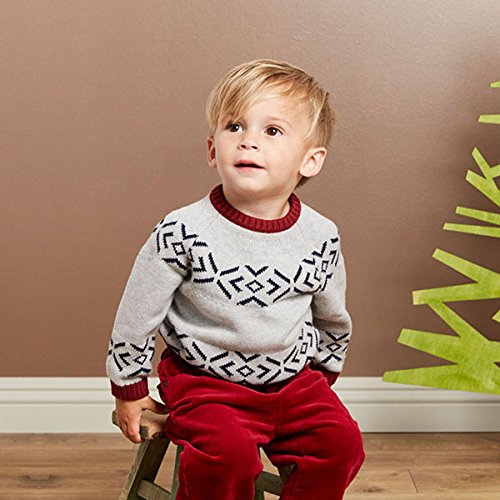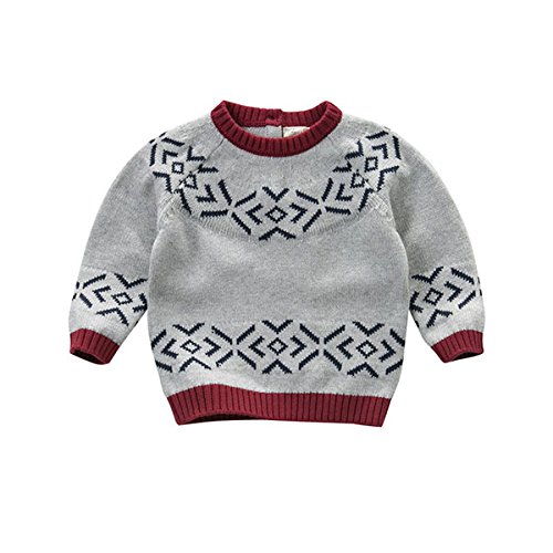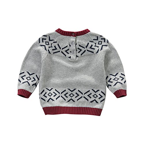 【dave&bella(デイブ・ベラ)】【秋冬/セーター】 ジャカード織ニットセーター 長袖 ラウンドネック プルオーバー ベビーセーター グレー 70cm/80cm/90cm/100cm/110cm/120cm【シンプル・上品・フォーマル・ベーシック