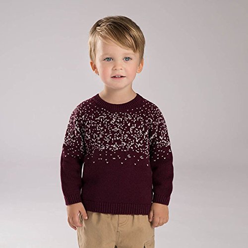 【dave&bella(デイブ・ベラ)】【秋冬/セーター】ニットセーター ジャガード織 ハイネック プルオーバー ワインレッド インナー 70cm/80cm/90cm/100cm/110cm/120cm DB4114 【シンプル・上品・フォーマル・ベーシック】