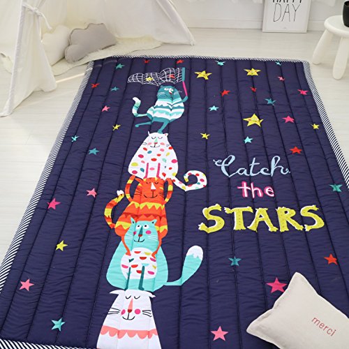 Ustide 可愛い猫ベビーマット おしゃれベビプレイマット ルームマット 綿100% 敷きマット 超可愛い 動物 お昼寝 室内カーペット