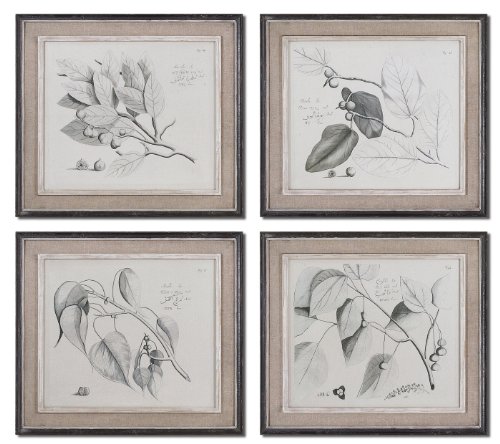 マルチセピア・リーフ・スタディ4個セットウォールアート仕上げ木製スタイル伝統的モデル番号: jm-150808