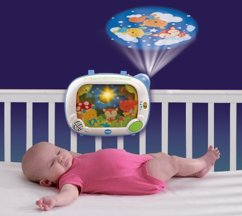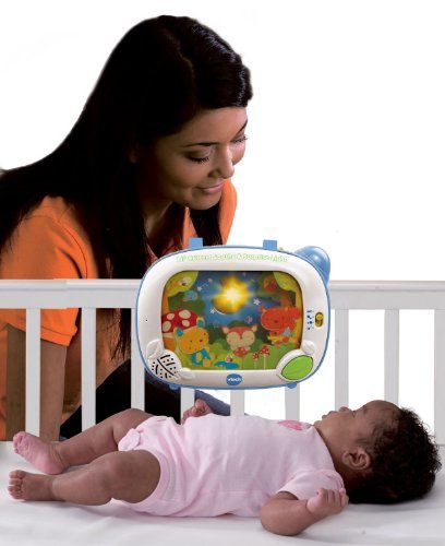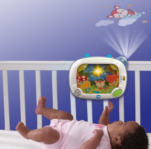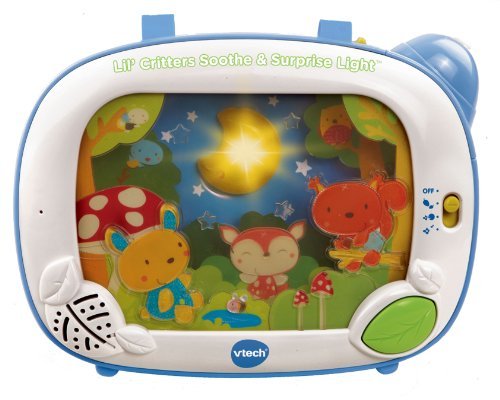 The Lil' Critters Soothe and Surprise Light by VTech sends your baby off to sweet dreams. Gentle nature sounds and music from the soothing night light calm your baby, while two peaceful animal images project on the ceiling to provide visual stimulation and comfort. For relief during the night, a soft crib light creates more than 10 glowing patterns and animal images, and when your baby cries, this baby crib light's built-in sensor activates calming sounds and melodies. The music player soothes your baby to sleep with over 65 soothing lullabies, nursery rhymes, melodies and nature sounds. Program the music in 10, 20, or 30 minute intervals using the time selector switch. It's off to dream land with your Lil' Critters!.