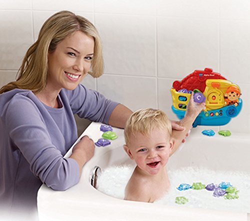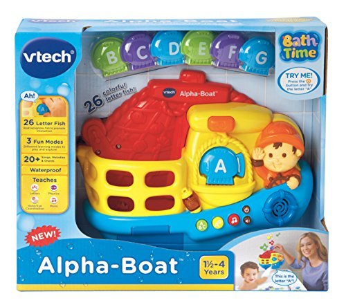 Welcome aboard the Alpha-Boat by VTech. Catch the floating letter fish and put them on the scale to hear letter names, letter sounds and music. Then, your child can play a simple question and answer game that helps quiz them on what they've learned.