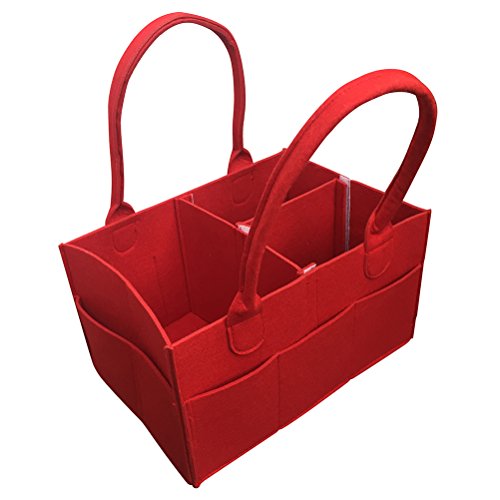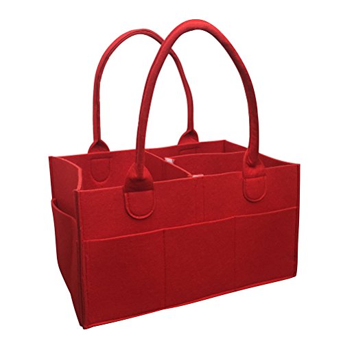 【VANCORE】ベビー おむつストッカー オムツ収納ケース 子供おもちゃ 赤ん坊 用品収納バッグ おしりふき/着替え/タオル入れ フェルト超軽 11ポケット大容量(5色)赤色