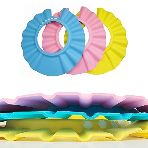 (VAリンクス)VAlinks 子供用シャワー防水帽 サイズ調節ストラップ付き 柔らかい素材 安全 保護 風呂 浴室 目にも耳にも鼻にも、水もシャンプー液も入らないように (3色セット)