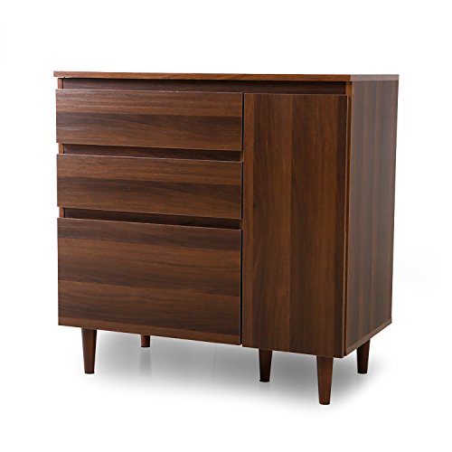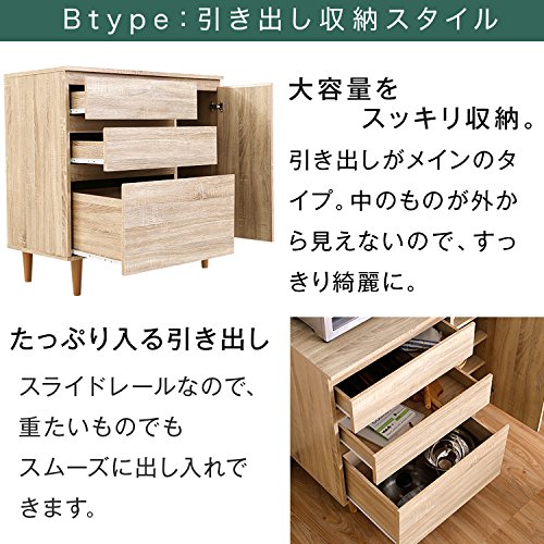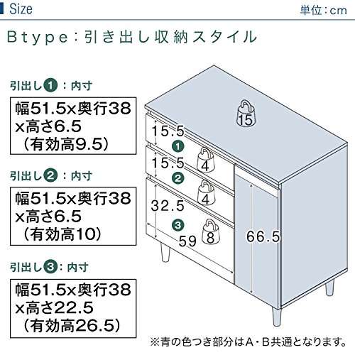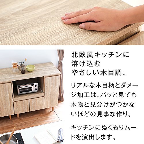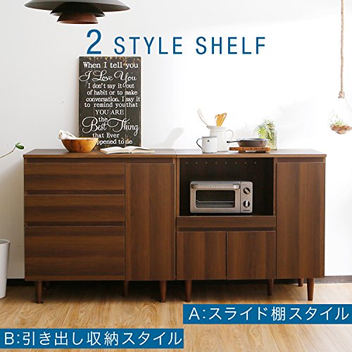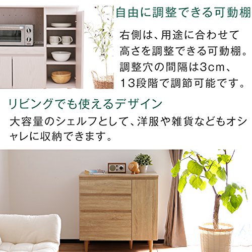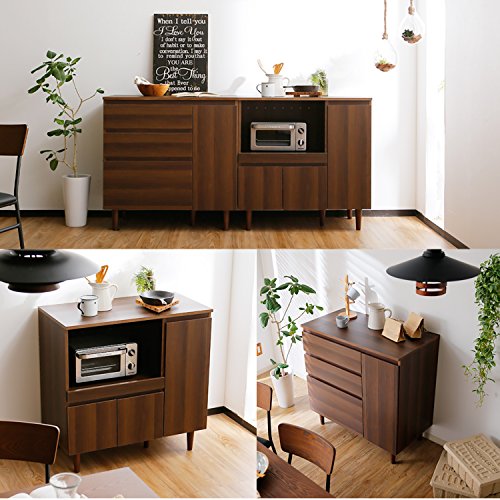 LOWYA (ロウヤ) 【下段単品】食器棚 レンジ台 可動棚3枚 引出し3杯 スライドレール リアル木目 キッチンラック 幅90cm ウォルナット