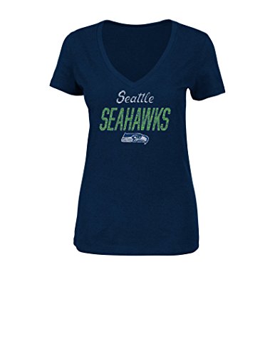 NFLシアトル・シーホークスレディースプログラムWinningランク半袖VネックTシャツ、大、海軍ヘザー