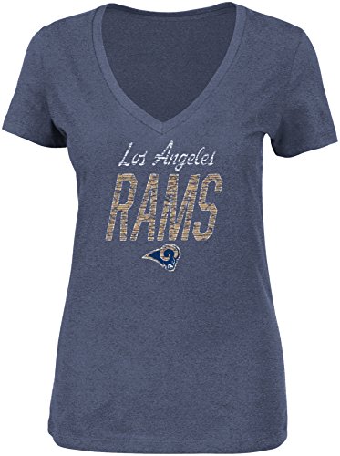 NFL LA RamsレディースWinning Ranksプログラム半袖VネックTシャツ、スモール、海軍ヘザー