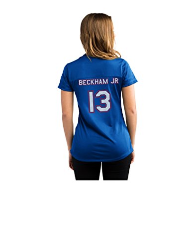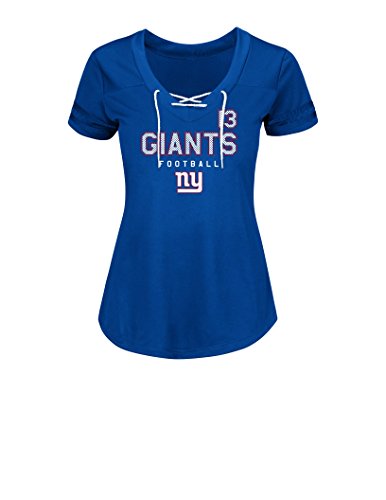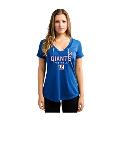 NFLニューヨーク・ジャイアンツOdell Beckham 13レディース半袖Vネック合成レースアップファッショントップス XL ブルー
