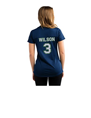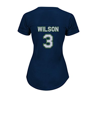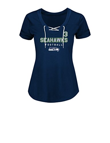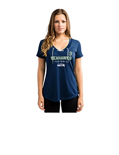 NFL Seattle Seahawks Russell Wilson 3の最初ラウンダー半袖Vネック合成レースアップレディースファッショントップス L