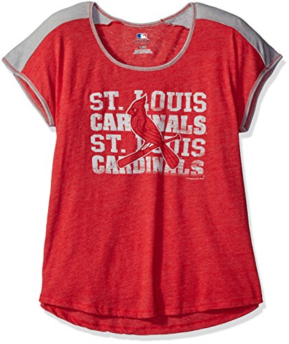MLBセントルイス・カージナルスレディースStay Onターゲットファッショントップ、スモール、Athletic Red Heather / Steel Heather