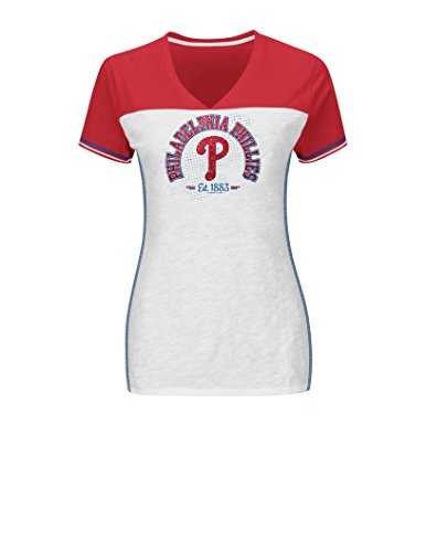 MLB Philadelphia PhilliesレディースシャイニングVictoryファッショントップ、スモール、ホワイト/ Athletic Red / Deep Royal