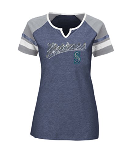 MLB Seattle Mariners Women 's The Replayファッショントップ、M、Athletic Navy Heather /ストーングレー/ホワイト