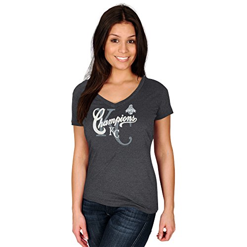 MLB Kansas City RoyalsレディースCurveball半袖VネックTシャツ、スモール、チャコールヘザー