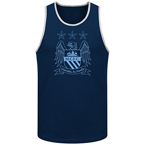 マンチェスター・シティFCサッカークラブチームCrestメンズタンクトップネイビー S ブルー