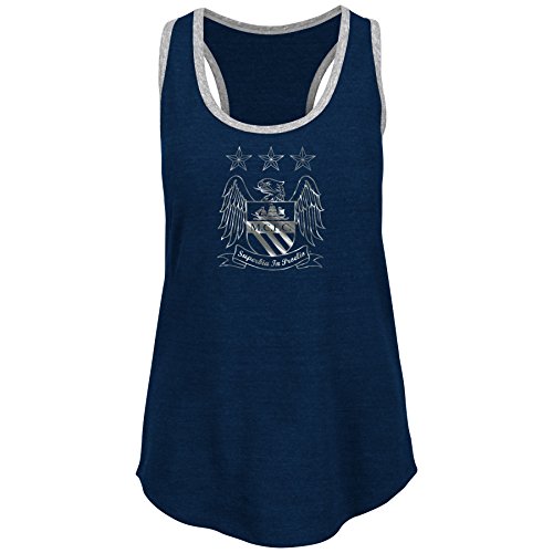 English Premiership Manchester UnitedレディースMajestic Soccer Football ClubマンチェスターCrest Teeノースリーブスクープネックレーサーバックタンク、XL、海軍ヘザー/スチールヘザー