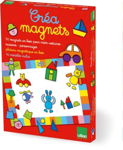 Have lots of creative fun with the Vilac magnetic blackboard with magnets. The fun magnetic pieces feature a variety of shapes, vehicles, clothing and much more ensuring endless design possibilities. The shapes can be arranged and rearranged on the board which features a colorful border to display those design masterpieces.. Vilac has been manufacturing wooden toys for over 90 years and have become one of the oldest toymakers in Europe. Originally founded by narcisse villet in 1911 as a wood turning workshop in jura, France. Vilac specialize in finely lacquered wooden toys.
