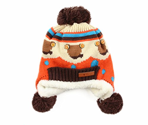 ECOSCOベビー幼児少年少女ニットかぎ針編みリブポンポン付き冬帽子キャップフード暖かい ブラウン