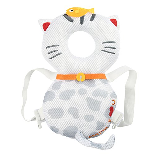 VIYOR 赤ちゃん 転倒防止 リュック クッション 頭 保護 セーフティ ヘルメット通気 出産祝い メッシュ 白いネコ
