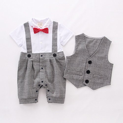 VIYOR 赤ちゃん ベビー服 ロンパース ベスト 紳士服 半袖 結婚式 記念撮影 お祝い 90