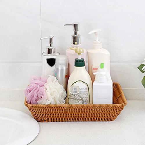 Vktech 100 %ハンドメイドWeavedストレージバスケットImitation Rattan手作りHamperウィッカートレイWeavingラックホルダーコンテナ収納ボックスナチュラルインテリアフルーツ野菜バスケットServingバスケット 2vh2ux1uc0kv9uf8D02-US02