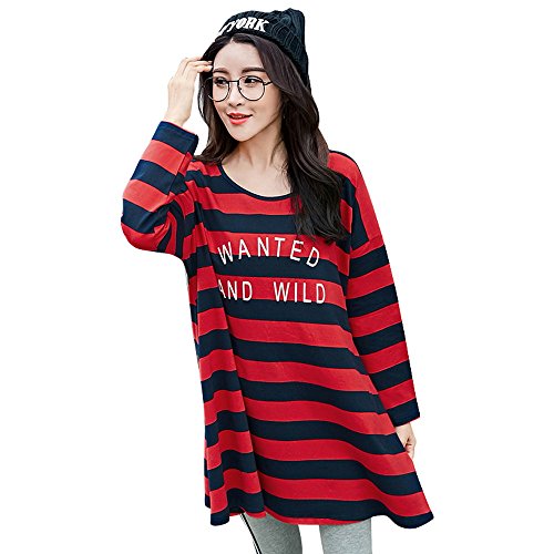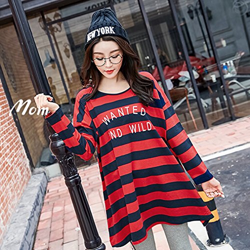 マタニティウェア レディース Tシャツ 長袖/半袖 ロング オールインワン 【産前産後兼用】 マタニティ ママ服 マタニティ服 妊娠 妊娠服 妊婦服 ゆったり レッド(長袖) XL