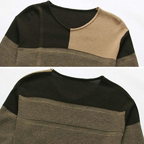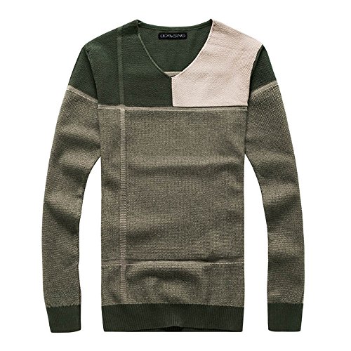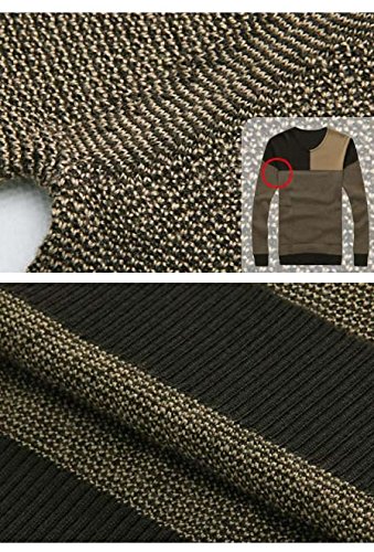 セーター メンズ クルーネック ニット 細身 タイト 切り替え アメカジ ケーブル編み カジュアル 無地 トップス 個性 人気 コーデ トップイズム 大きいサイズ グリーンA M