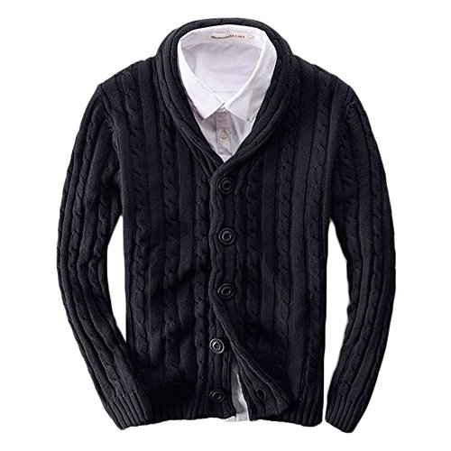 カーディガン ショールカラー メンズ ニット 細身 タイト ニットソー カジュアル セーター ケーブル編み Vネック 半袖 長袖 ざっくりニット ケーブルニット 大きいサイズ ブラック M