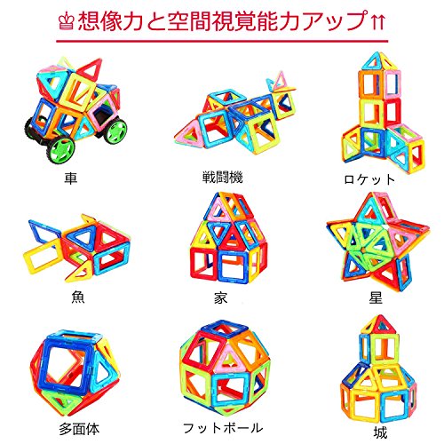 - 【子供プレゼントとして最高】磁石ブロックは子供の教育・知育玩具として最適しています、色もカラフルで、子供は遊びながら、贈り物、出産祝い、子どもへのお誕生日、入園祝いなどのプレゼントにピッタリ。更に、新居お祝いも勧めです、好きな形を組み立て終わったら、室内装飾を施します。